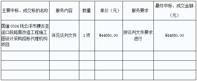 G324線云浮市腰古至逕口段路面改造工程施工圖設(shè)計采購招標(biāo)代理機(jī)構(gòu)項(xiàng)目的中標(biāo)、成交公告